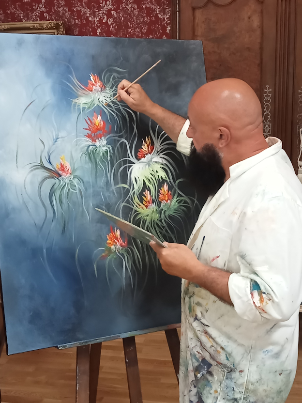Cette période marque mes premières réalisations et l’exploration d’une large palette de techniques, qui deviendra l’une des constantes de mon parcours une curiosité qui ne m’a jamais quitté. En 1999, j’ai obtenu un brevet d’état avec option arts visuels. Cette formation se conclut par un séjour d’étude à la faculté de Meknès, au Maroc, auprès de professeurs en arts appliqués et de grands artistes Marocains. Cette expérience a été pour moi un tournant majeur, elle a éveillé en moi le désir profond de créer des émotions à travers mes œuvres et de partager mon univers artistique.